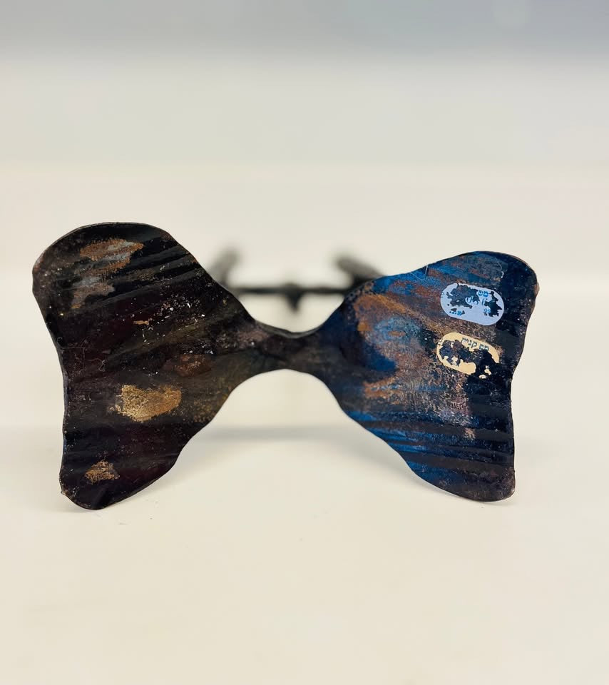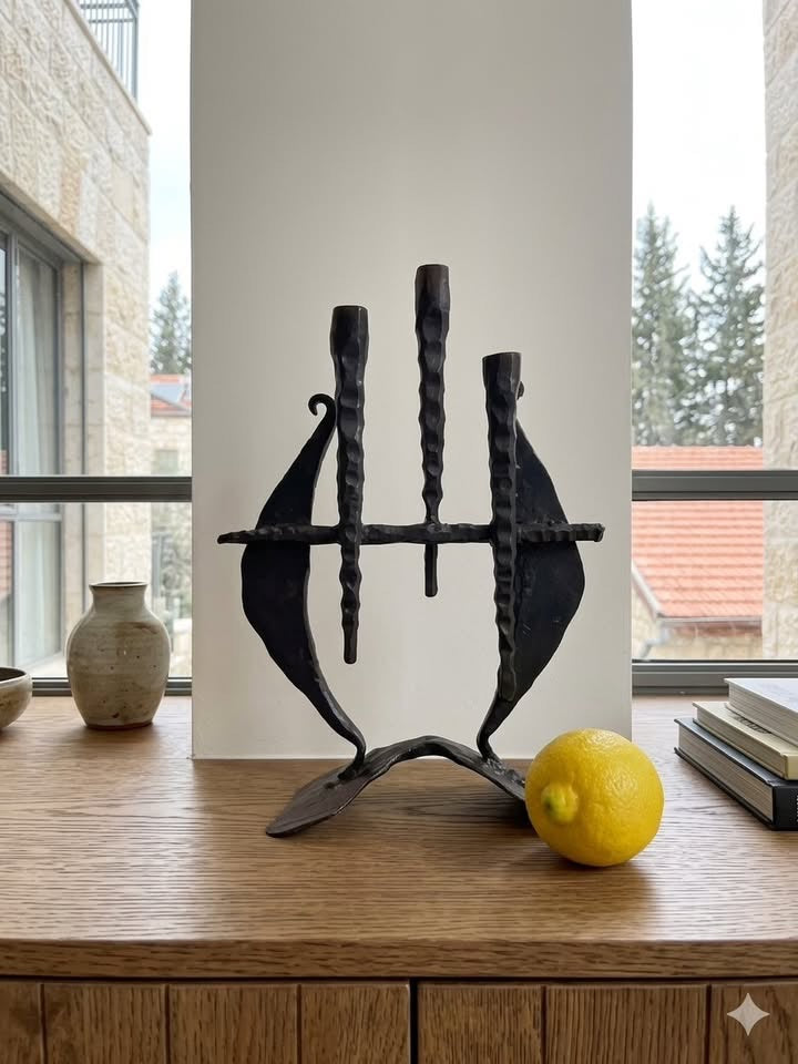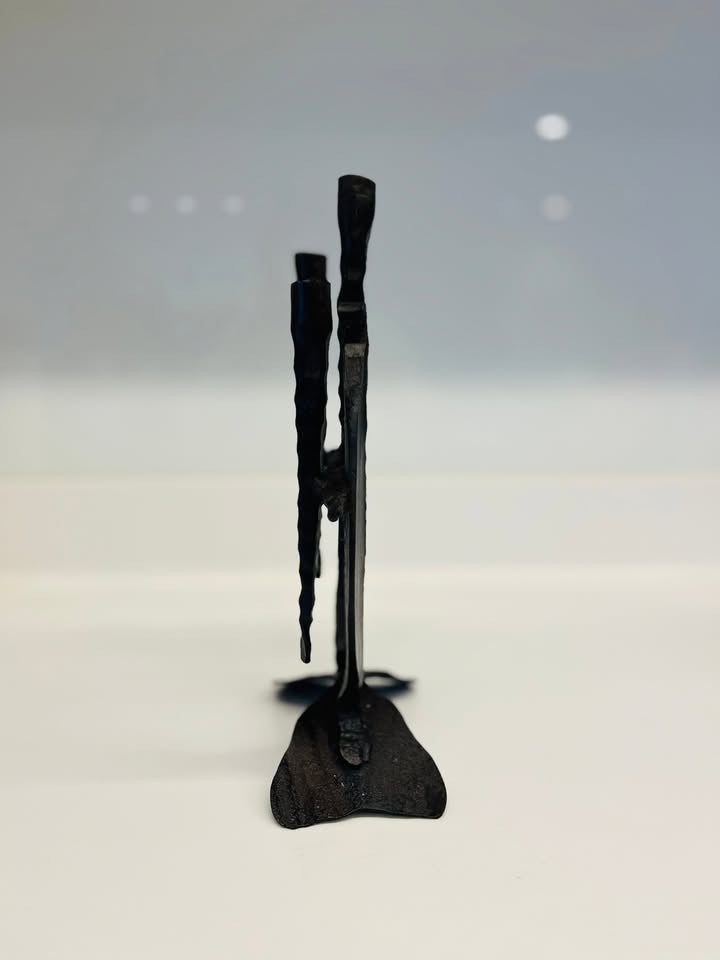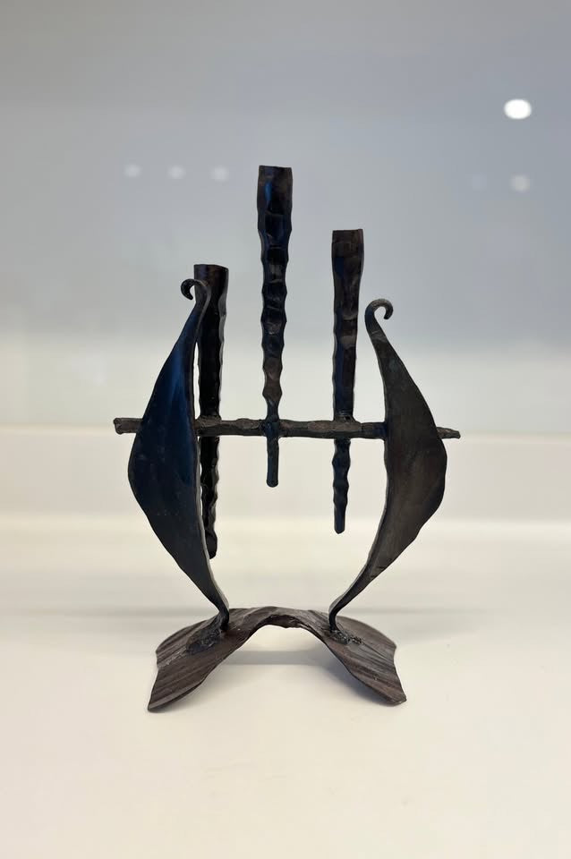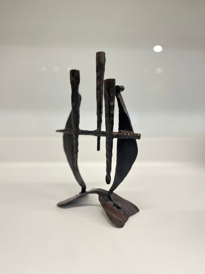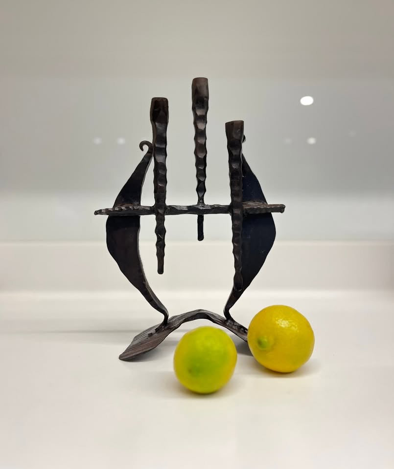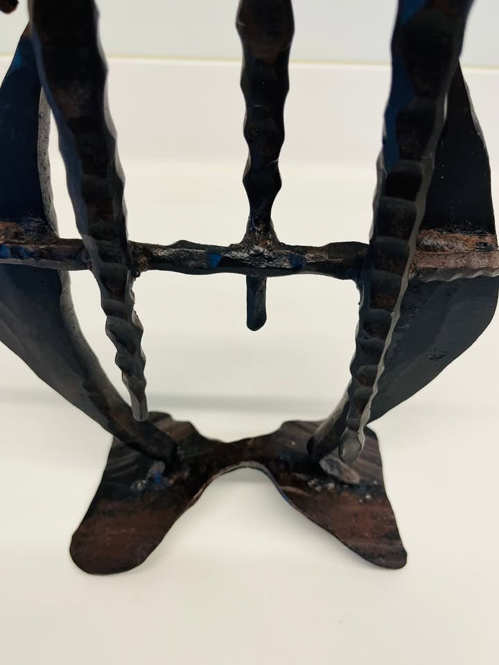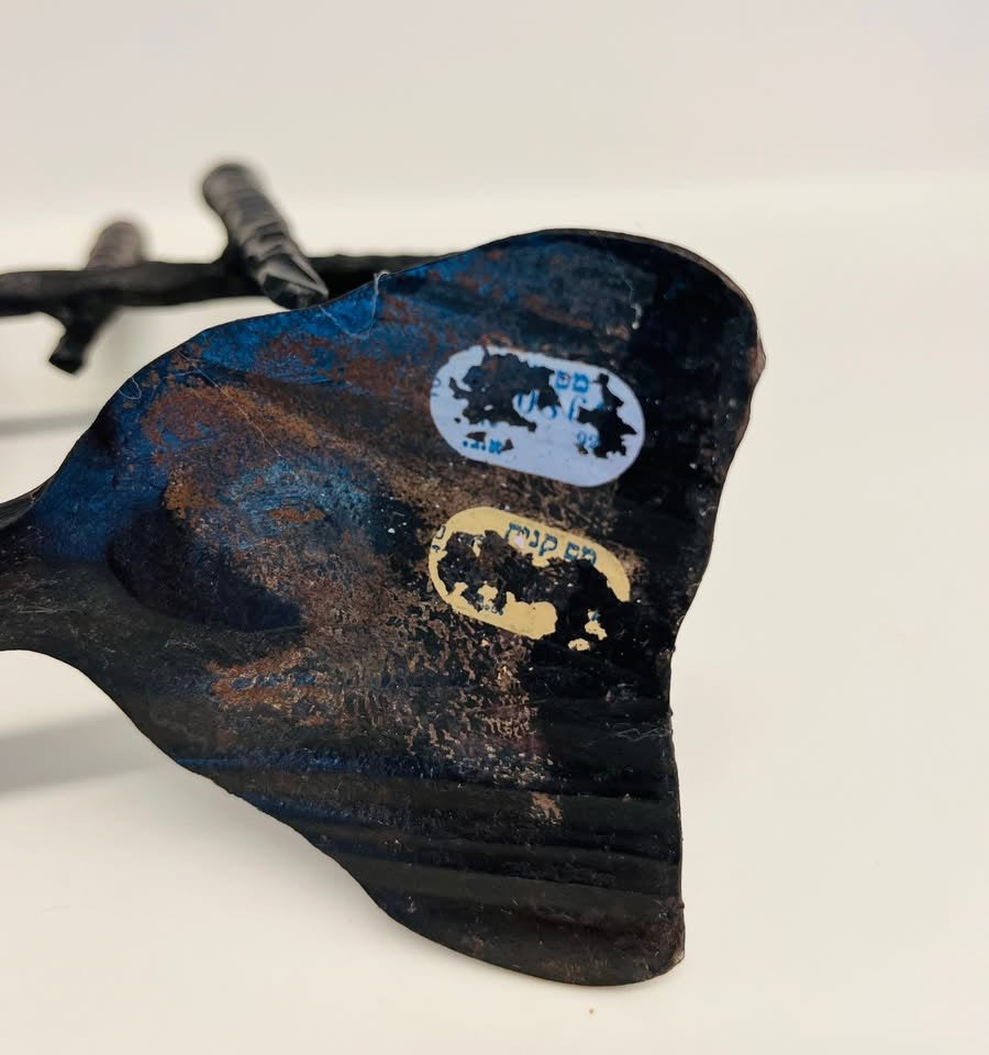 דוד פלומבו, פמוט תלת קני בצורת נבל דוד עשוי ברזל מושחר תוויות מס קניה בתחתית