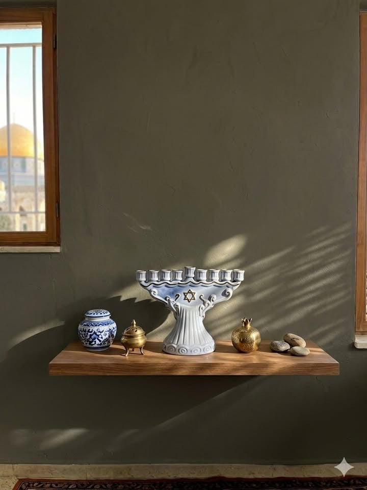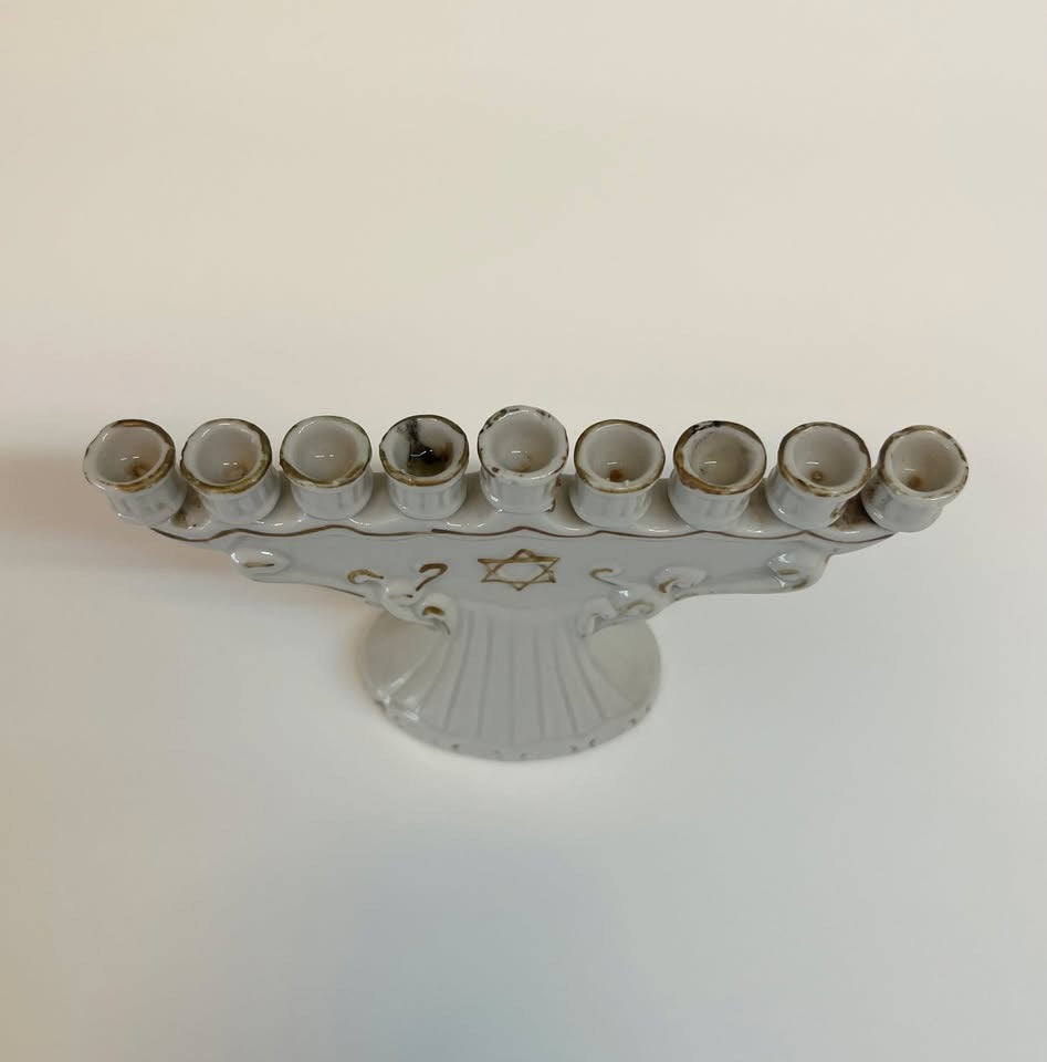 חנוכיית פורצלן קטנה בסגנון בוהמי
