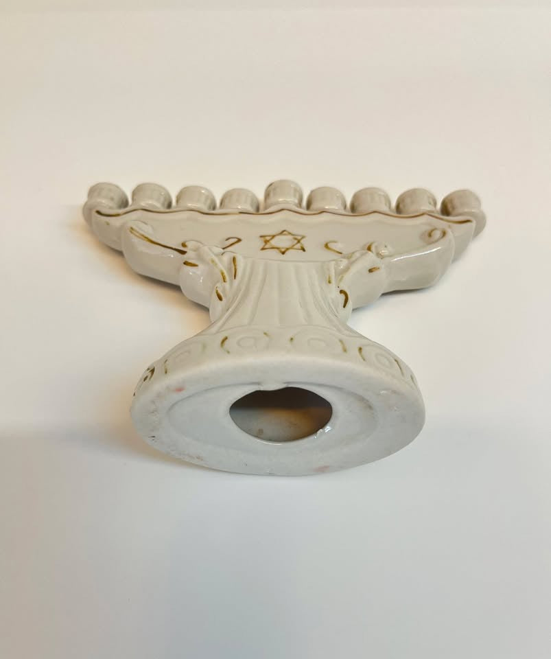 חנוכיית פורצלן ישנה בסגנון בוהמי, תוצרת צ׳כיה, המאה ה-20