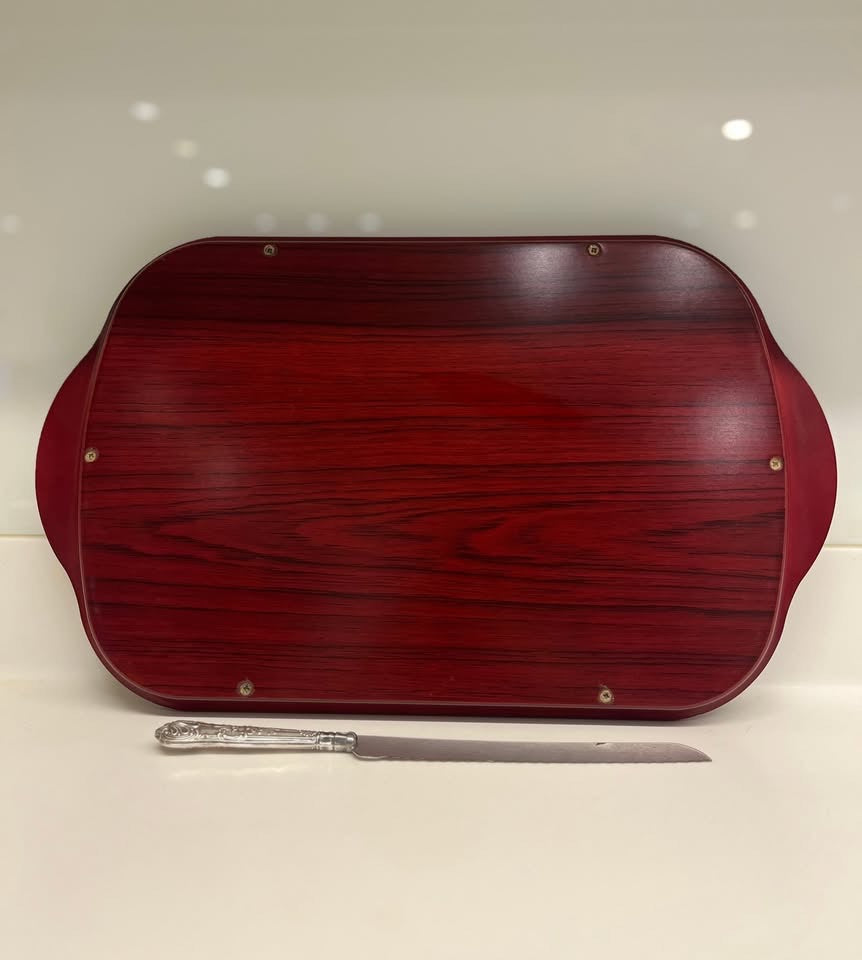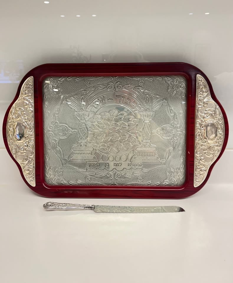 מגש שבת וסכין לחלה, עץ בשילוב כסף 925
