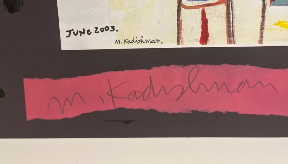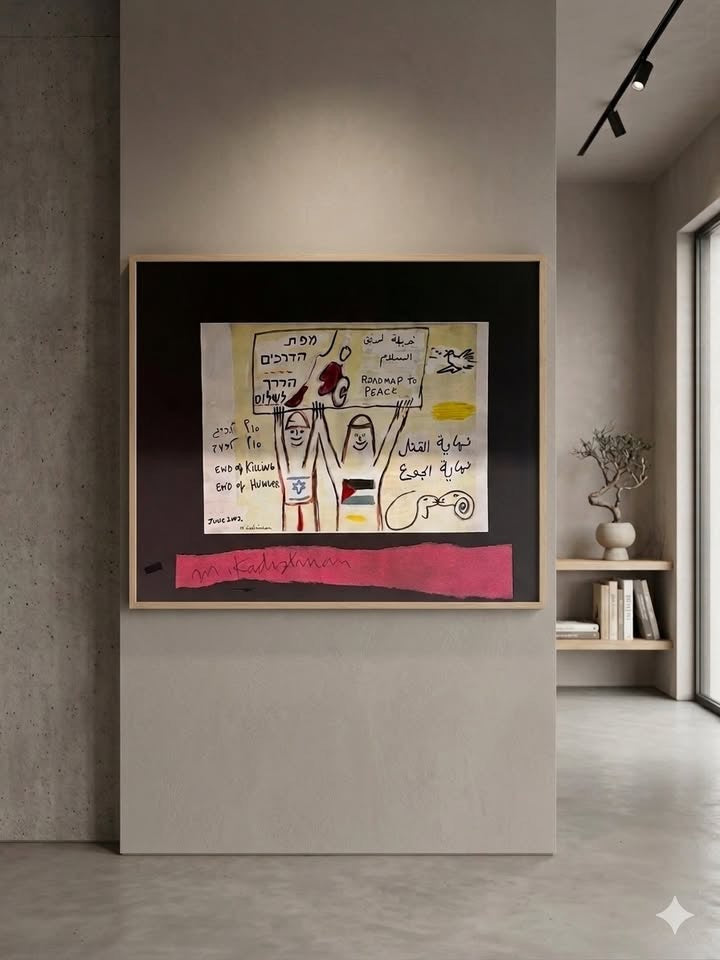 קדישמן, ליטוגרפיה צבועה ע״י האמן ׳מפת הדרכים׳ או ׳הדרך לשלום׳. הציור עצמו נוצר ביוני 2003 ומשלב טקסט בשלוש השפות: עברית, ערבית ואנגלית, יחד עם איורים סמליים כדי להביע מסר של שלום ואחווה