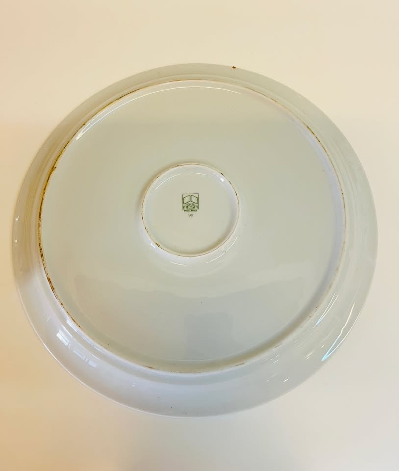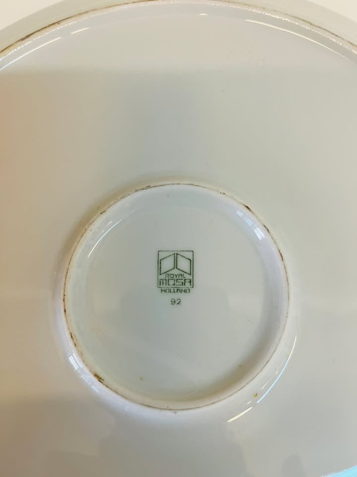 צלחת סדר מפורצלן איכותי תוצרת ״רויאל מוסה״ בהולנד, שנות ה-60-80. מעוטרת בהדפס בסגנון פולקלורי קלאסי, חתומה