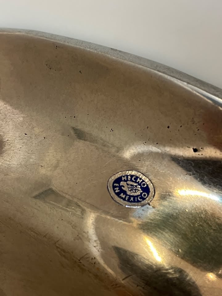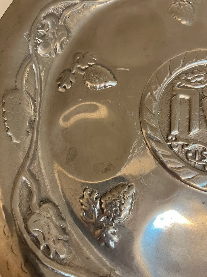 קערת סדר וינטג׳ גדולה עשויה פיוטר בעבודת יד, תוצרת מקסיקו, במראה כפרי עתיק