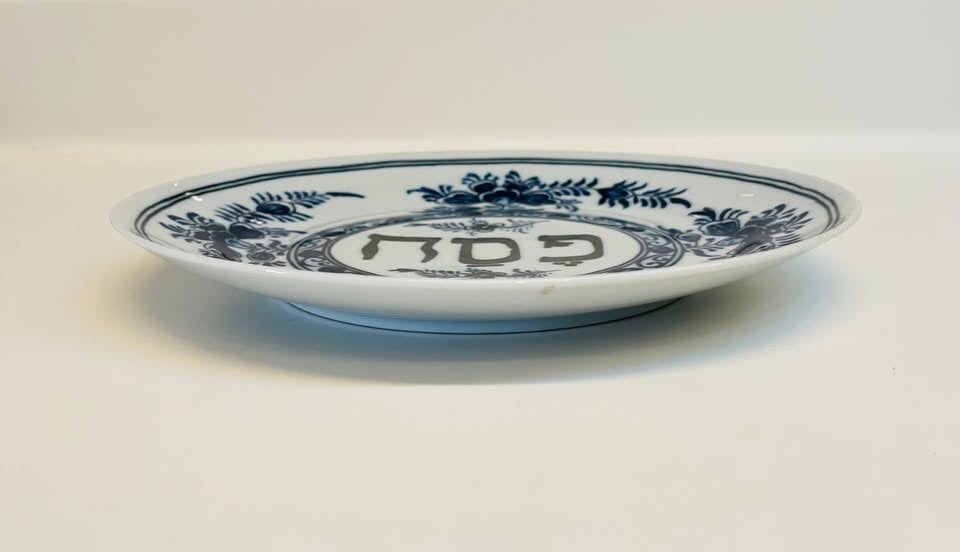 צלחת פסח תוצרת נעמן פורצלן, דוגמת דלפט כחול לבן.