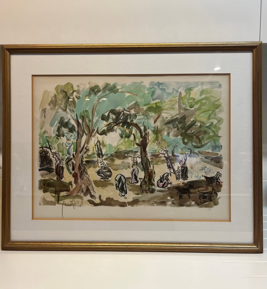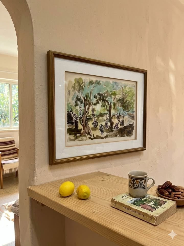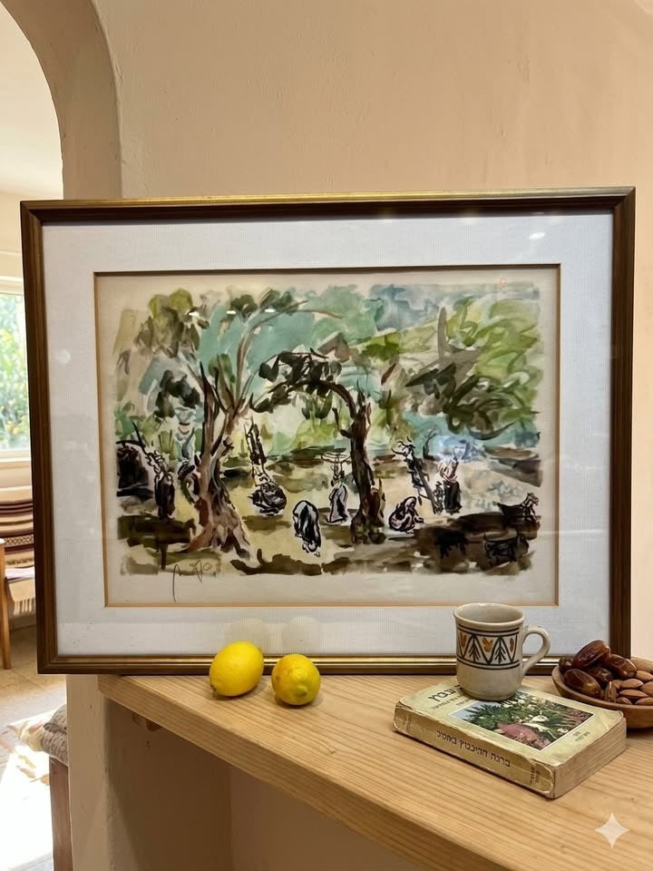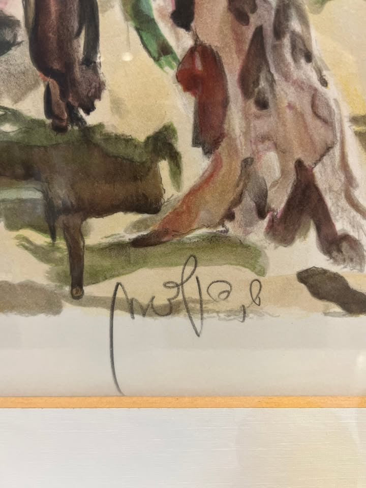 שמשון הולצמן, ליטוגרפיה ישנה ויפה חתומה בעיפרון וממוסגרת.