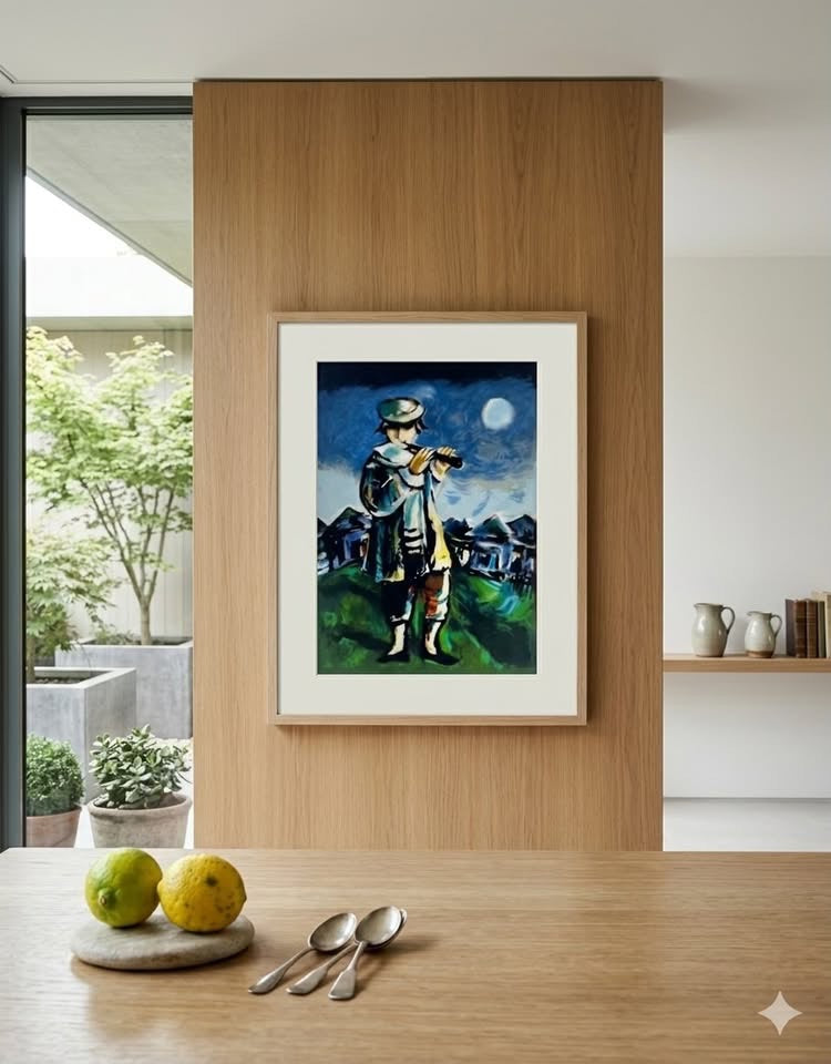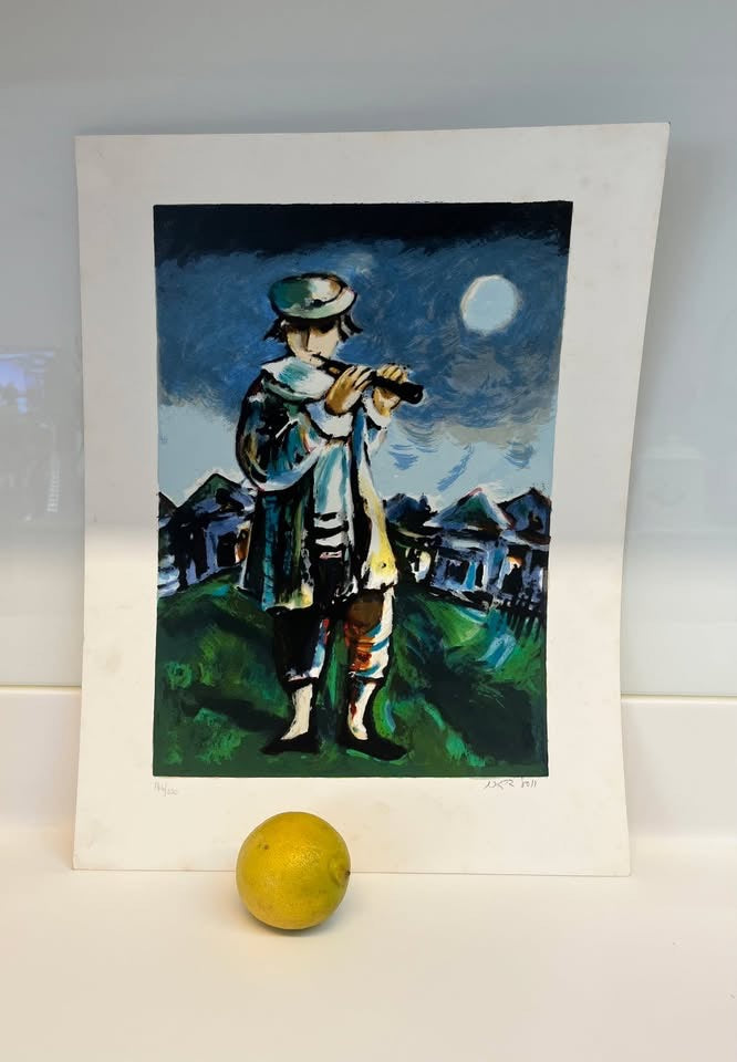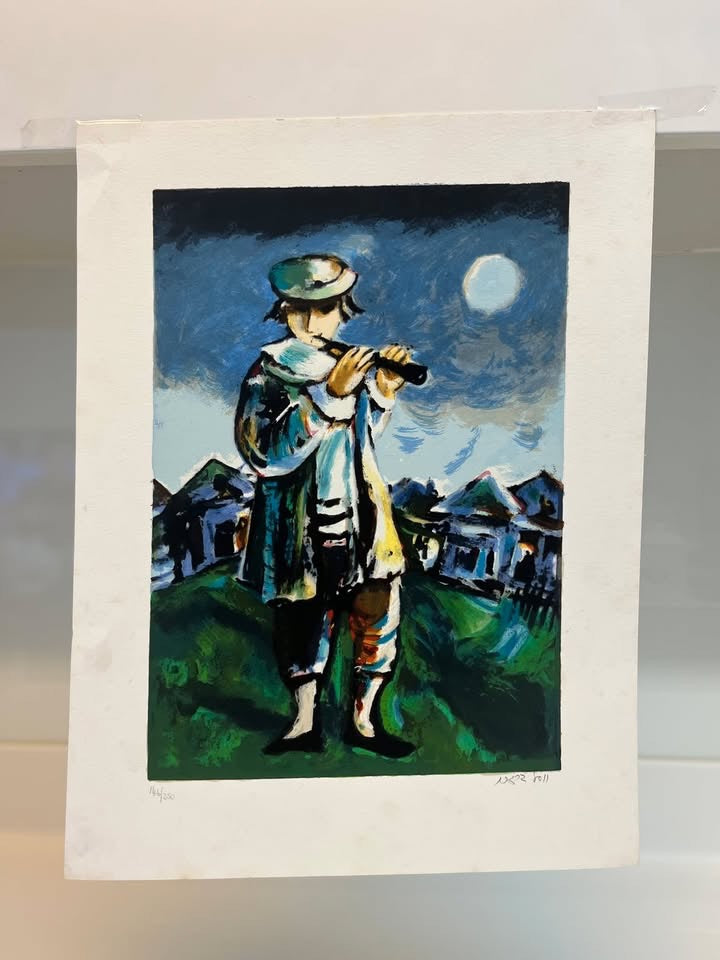 יוסל ברגנר, ליטוגרפיה ׳חסיד מנגן בחליל׳ חתומה בעיפרון וממוספרת, לא ממוסגרת